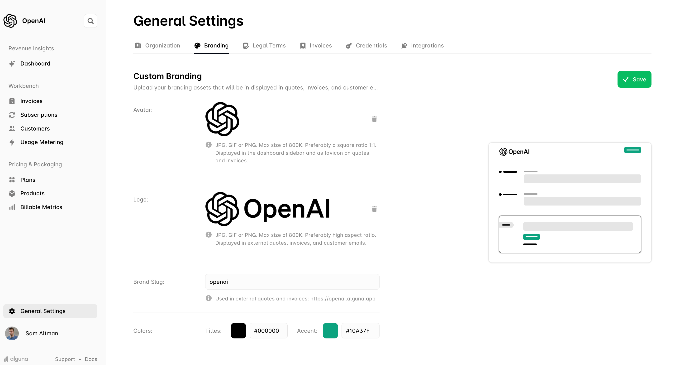 - Usage: The brand slug is used in external quotes and invoices. It is a unique identifier added to your public-facing URLs.